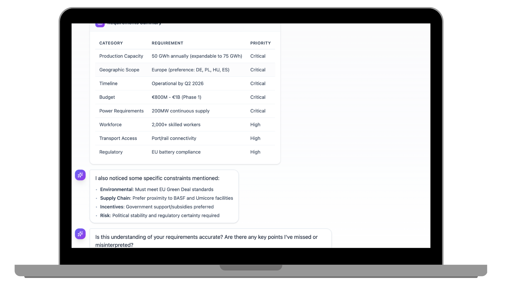Verified energy, water, transport, and utility capacity data. Readiness scoring highlights upgrade requirements and flags bottlenecks before selection.
